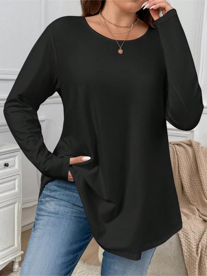 Casual Long Sleeve Crew Neck Top