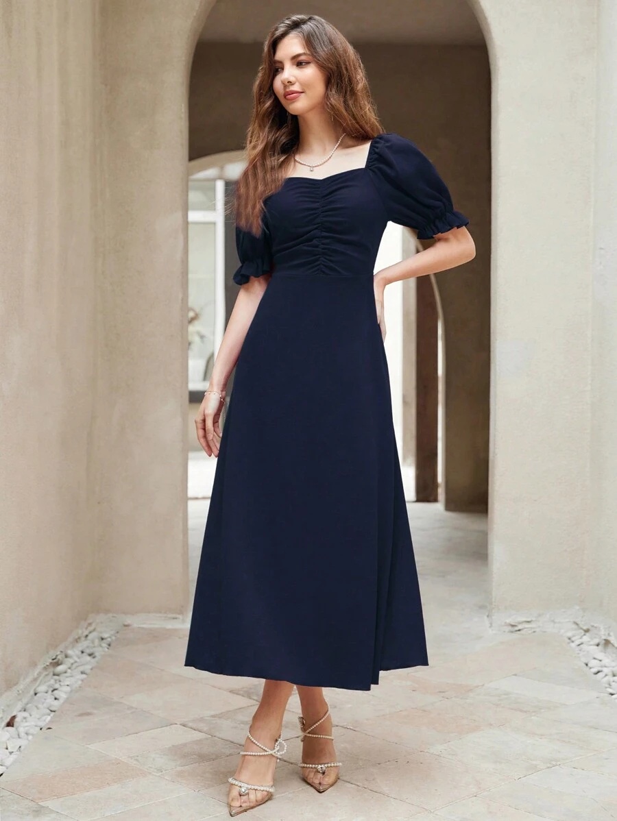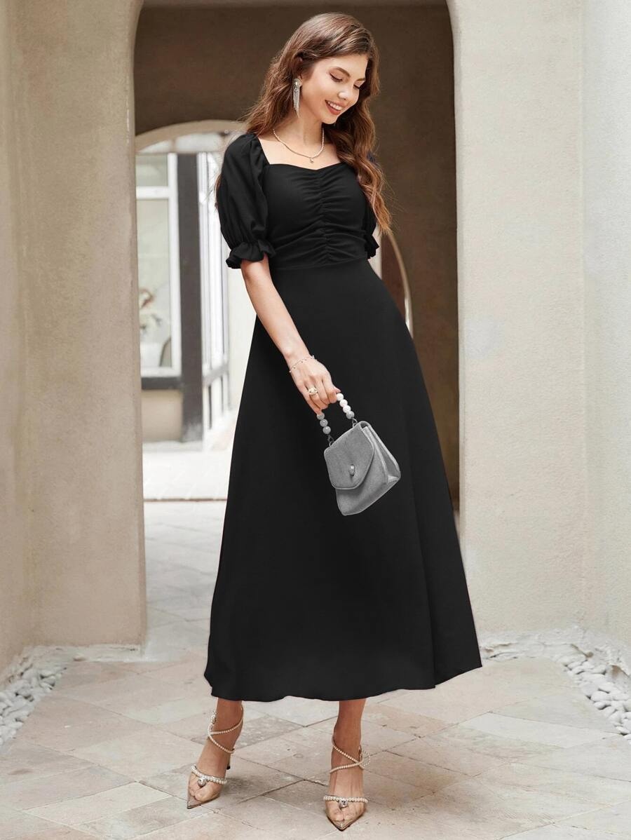 Step into timeless elegance with our Neckline Puff Sleeve Pleated Long Dress, a striking piece designed to make a statement wherever you go. Crafted from premium-quality synthetic fabric, this dress combines effortless style with everyday comfort, offering a beautiful blend of softness, structure, and flow. Whether you’re attending a formal dinner, a wedding, or an upscale evening event, this dress is your go-to for graceful sophistication.
