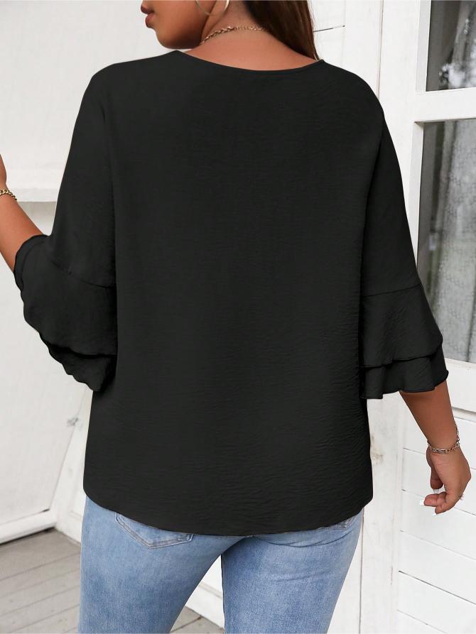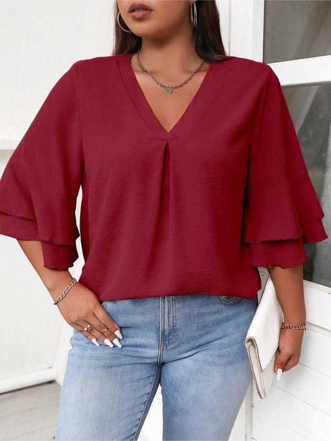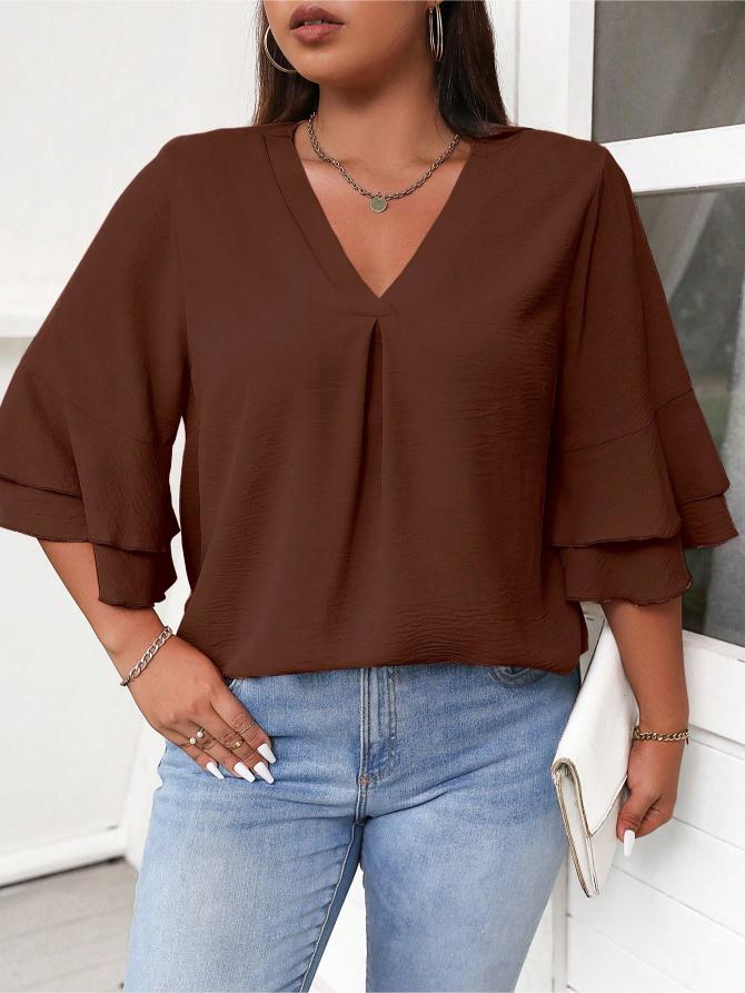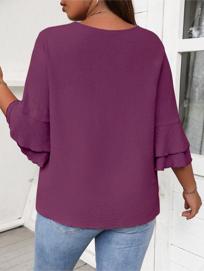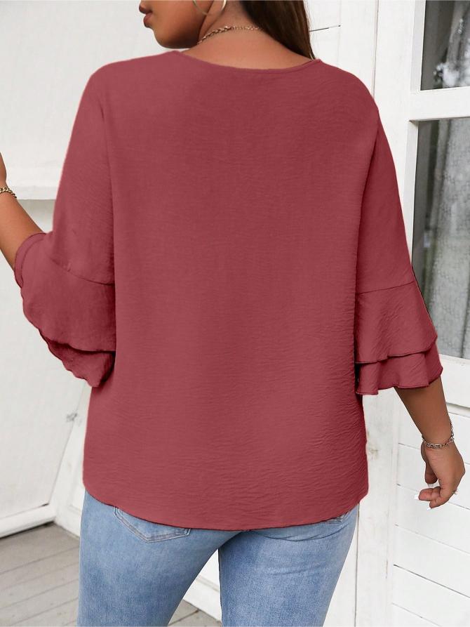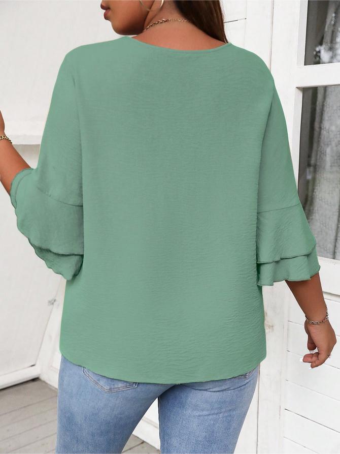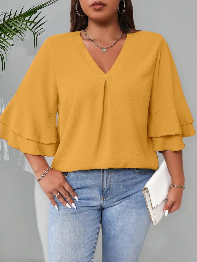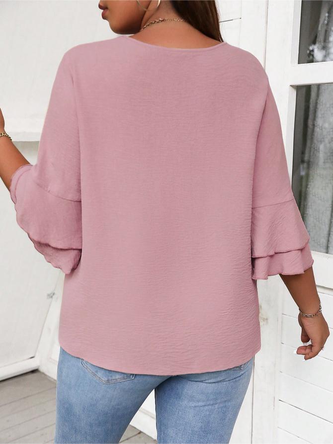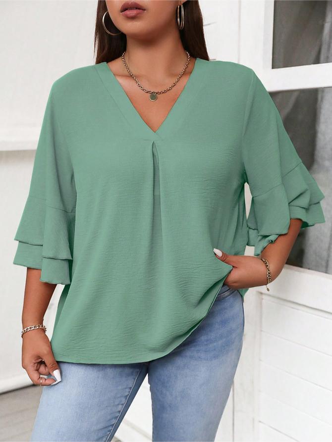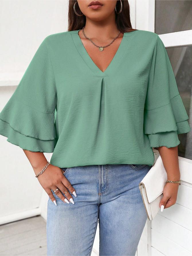 This Elegant Solid Flounce Sleeve Blouse is the ideal combination of style, comfort, and functionality. Whether for work, casual outings, or special occasions, it brings a touch of elegance to every look.