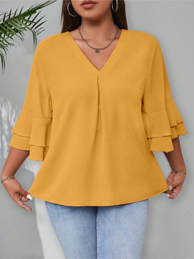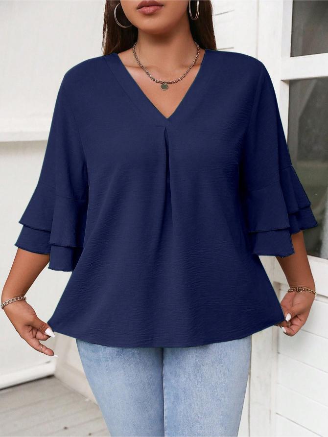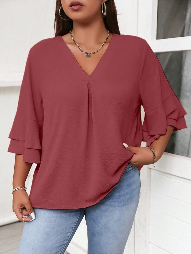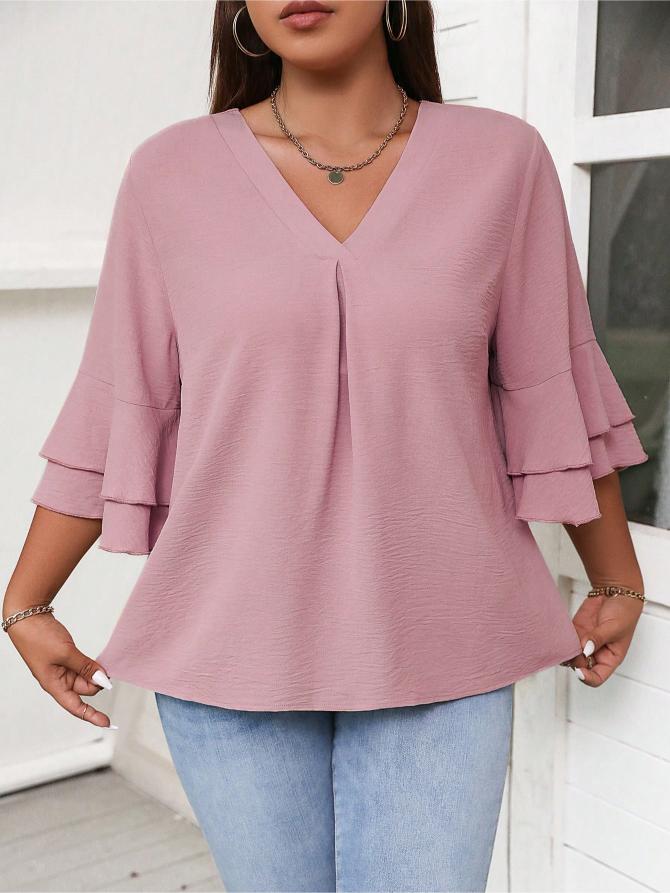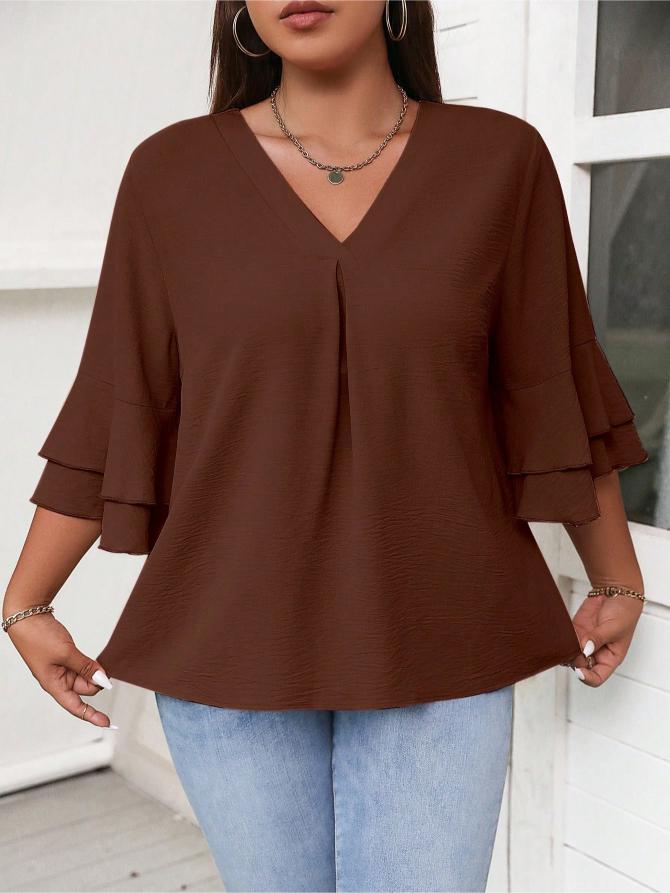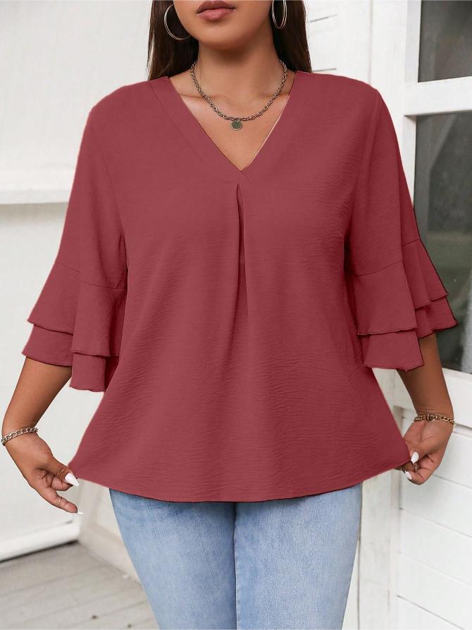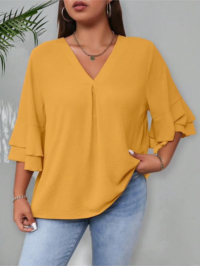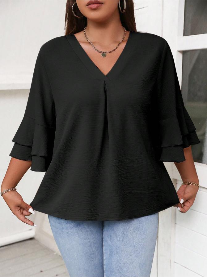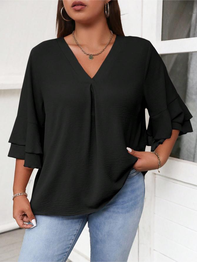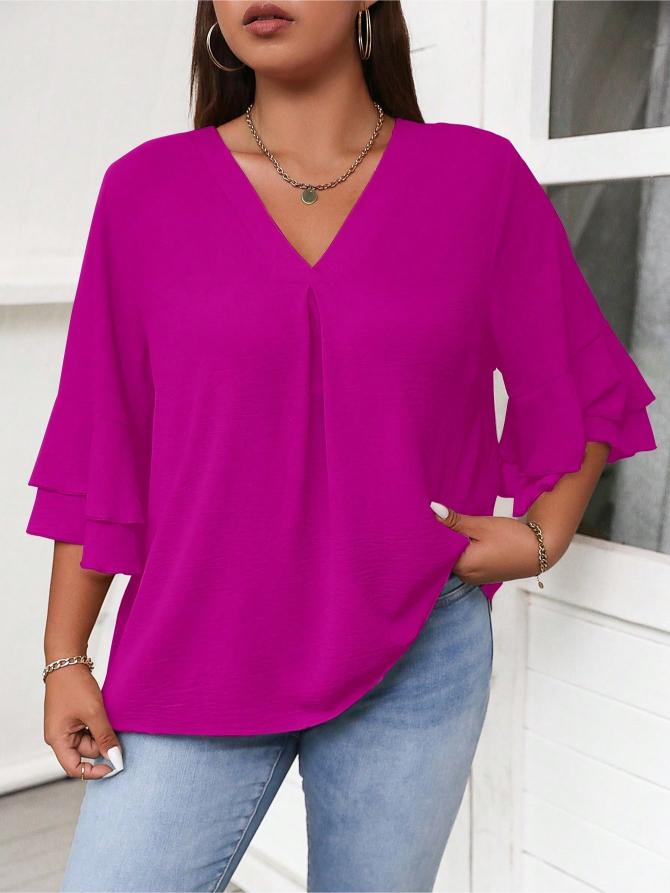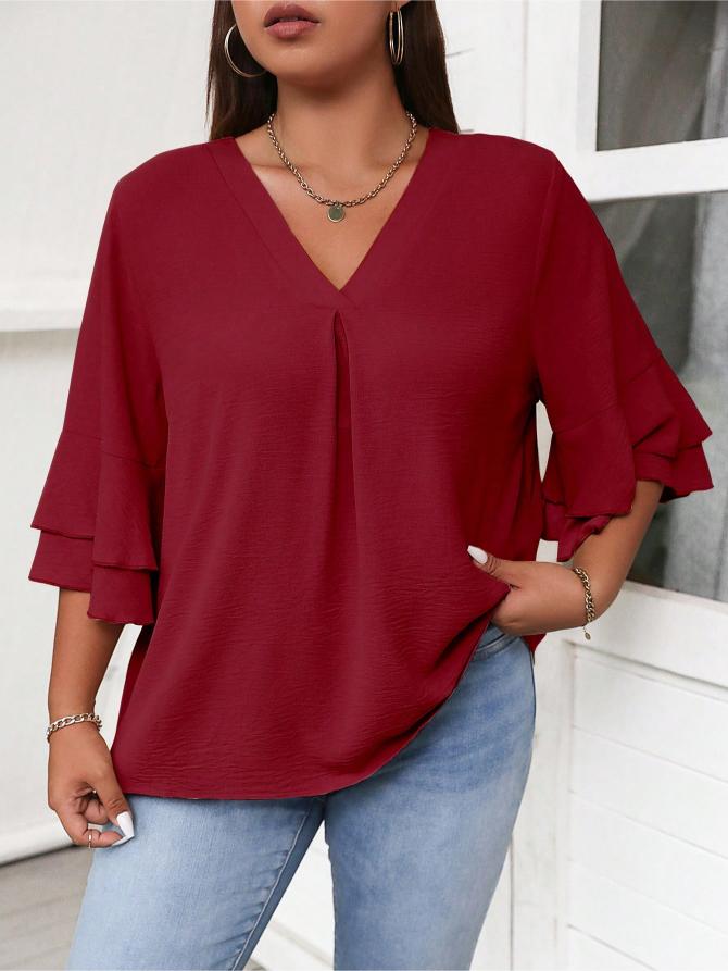 This Elegant Solid Flounce Sleeve Blouse is the ideal combination of style, comfort, and functionality. Whether for work, casual outings, or special occasions, it brings a touch of elegance to every look.